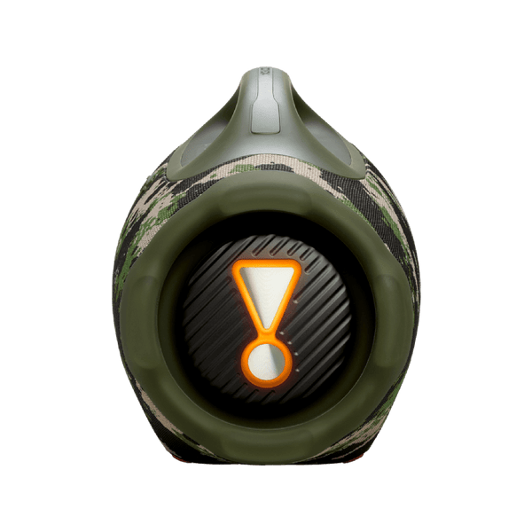 When it comes to bass, we like having options. Fire up the JBL Boombox 4 and you'll get thatclassic JBL signature bass we all love. Want to take it deeper? Hit the Bass Boost button onthe top panel-the JBL Horn mark glows orange, and boom, you're in Deep Bass mode, wherethose two woofers and three passive radiators go all in. Want something tighter and moreenergetic? Tap the button once more, the Horn mark turns white, and you're in Punchy Bassmode.Whatever the mood, we've got the bass to match.