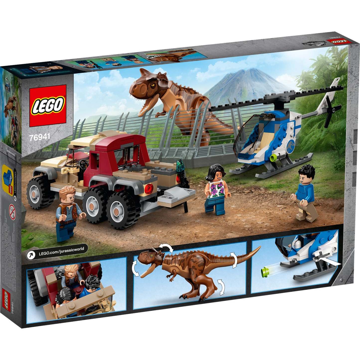 - Kids can play out a thrilling Carnotaurus Dinosaur Chase with this fun-packed LEGO® Jurassic World toy playset (76941), featuring a buildable helicopter and pickup truck.