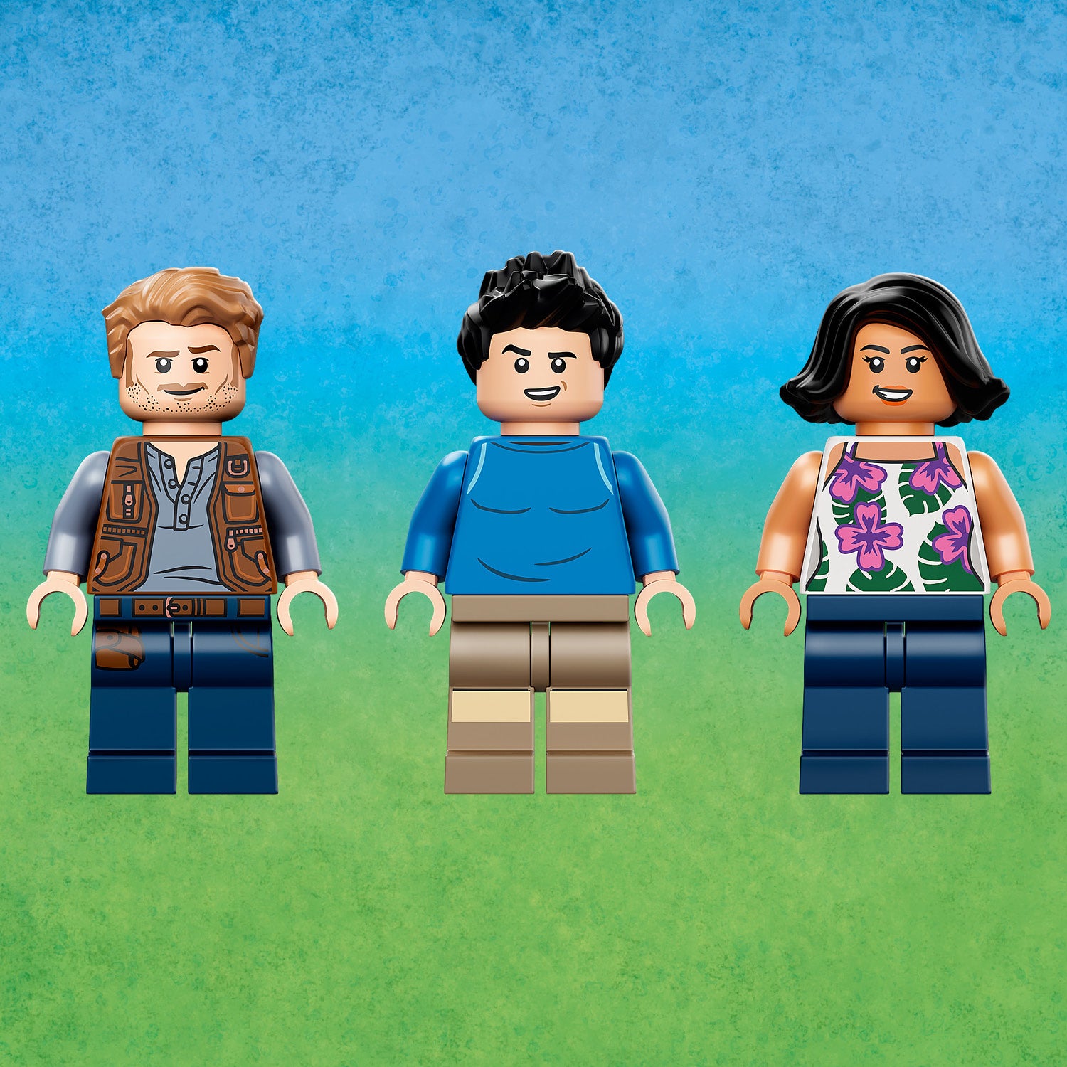 - Includes 3 minifigures: Kenji, Sammy and Owen Grady, plus a posable Carnotaurus toy figure and a Taser accessory element for action-packed play.