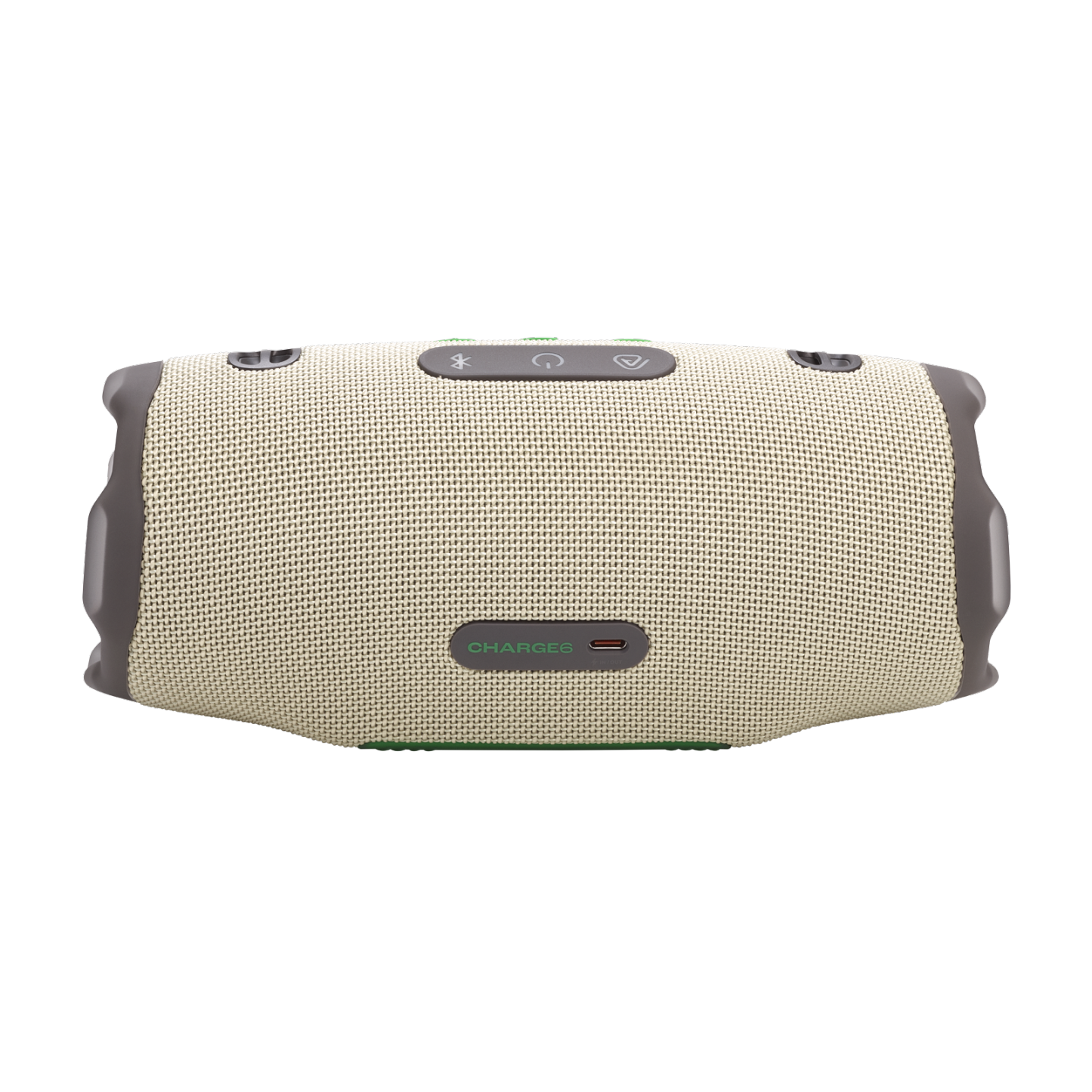 The JBL Charge 6 incorporates post-consumerrecycled plastic and fabric for the speaker grille. lt'salso packaged in FSC-certified paper printed with soy