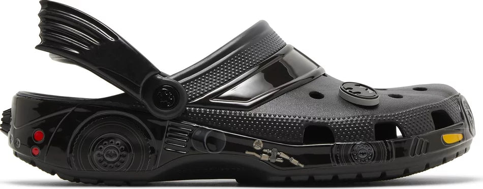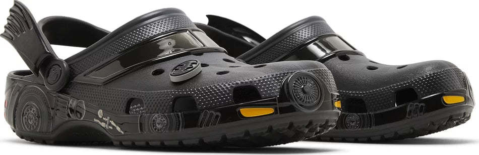 Step into the iconic world of Gotham City with the Classic Clog Batmobile. These playful yet stylish clogs celebrate one of cinema history's most iconic vehicles: the Batmobile. Featuring a bold black base with striking yellow accents, they embody Batman's mysterious and daring spirit.