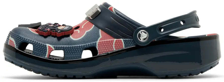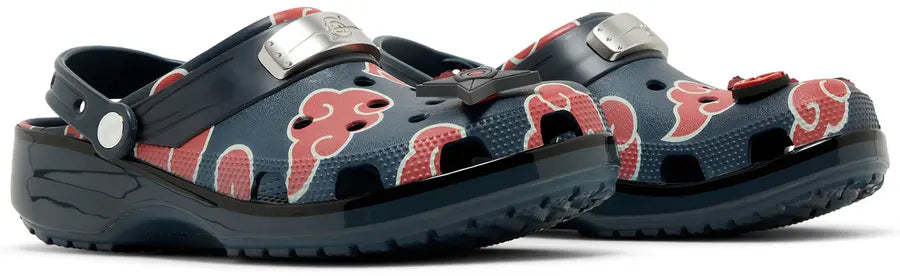 This version of the includes unique Jibbitz charms, such as a black ninja throwing star and a miniature Itachi. Made from lightweight and durable croslite resin, it ensures comfort and longevity. Ventilation ports provide air circulation, while the pivoting heel strap ensures a secure fit.