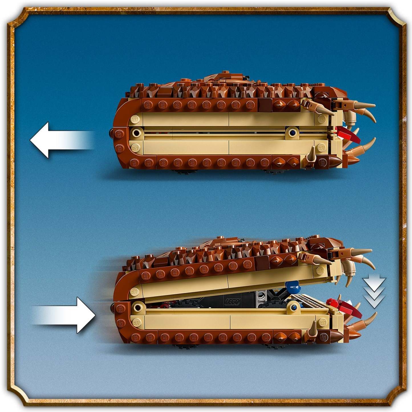 Put the magic of Hogwarts™ lessons in the hands of your young wizard, witch or Muggle™ with the LEGO® Harry Potter™ Chomping Monster Book of Monsters building toy (76449). The fun fantasy set features a detailed brick-built recreation of The Monster Book of Monsters, the sentient textbook used in the care of magical creatures. The model has hidden wheels and a pull-back function – so place it on a flat surface, pull back, let it go and watch it speed away with its mouth chomping.