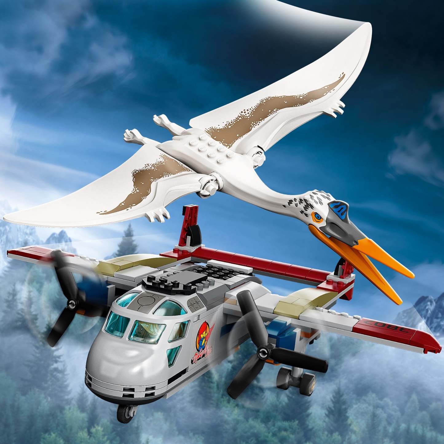 Relive thrilling flying action from the Jurassic World: Dominion movie with this Quetzalcoatlus Plane Ambush (76947) toy playset for dinosaur-loving kids aged 7 and up. It features an aeroplane with space for 3 minifigures in its cockpit, spinning propellers, an opening cargo hold and engines designed to break off under attack by the posable Quetzalcoatlus toy figure (the engines reattach easily).