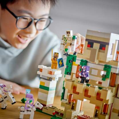- Minecraft® golem set – Kids can transform LEGO® Minecraft The Iron Golem Fortress (21250) from a battle-ready stronghold into a towering giant with large movable arms