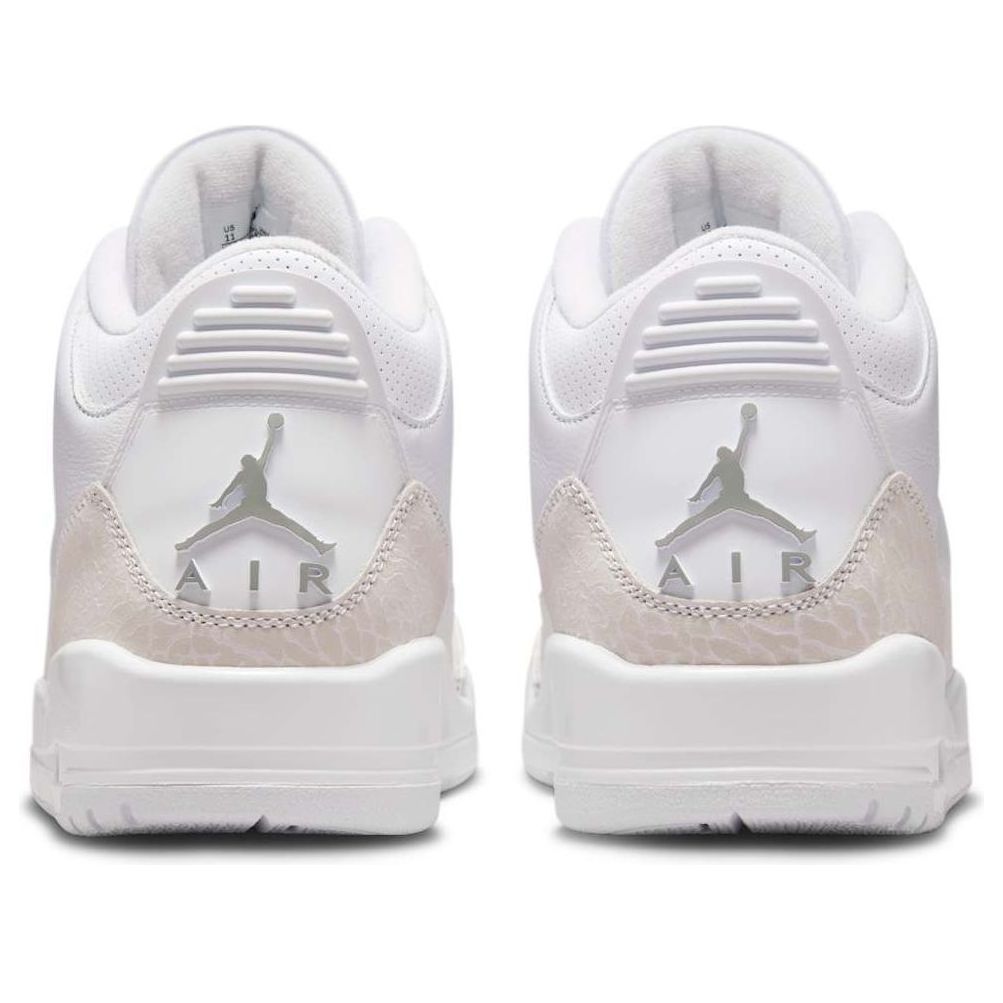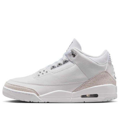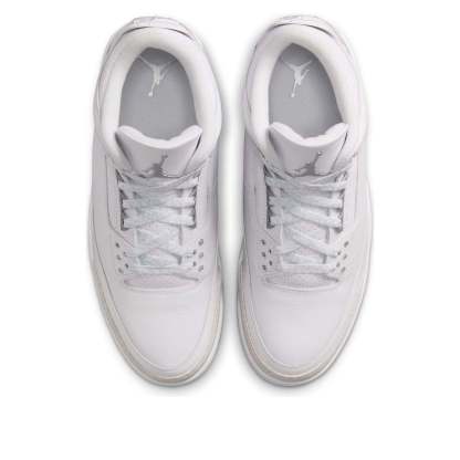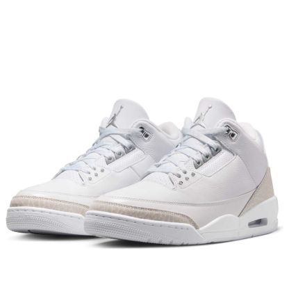 The iconic Air Jordan 3 "Pure Money" returns in Summer 2025! This all-white leather sneaker, accented with metallic silver, boasts the original's clean design and "Pure $" embroidery. A timeless classic, updated for a new generation.
