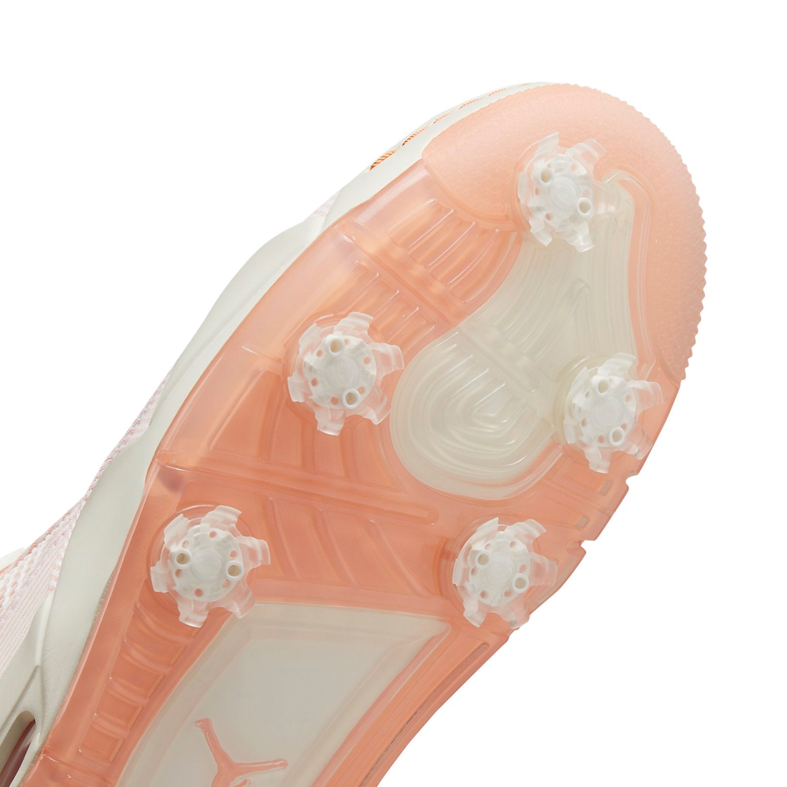 Air Jordan 4 Golf 'Apricot Agate' is a summer-ready sneaker that is perfect for hitting the greens. This sneaker features a seersucker upper in white and pink stripes. The Off-white Sail is applied to the sneaker’s molded eyelets, structural wings and stitched heel tab, the latter featuring a raised Jumpman logo in Apricot Agate. The sneaker sits on a foam midsole fitted with a visible Air-sole unit in the heel, and supported by a translucent outsole plate with removable spikes for optimal traction. Air Jordan 4 Golf 'Apricot Agate' is sure to turn heads when worn on or off the golf course.