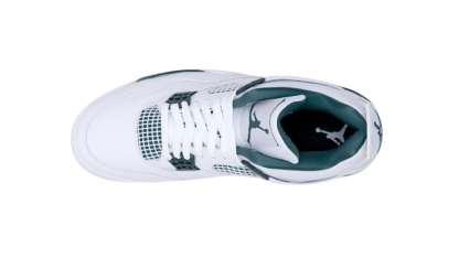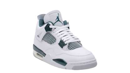 The Air Jordan 4 Retro 'Oxidized Green' is one of the most anticipated sneaker releases of the Summer/Fall 2024 season. Pairing a clean white and sail with an attractive tint of green, this shoe features a crisp white leather upper, tonal quarter panel netting, and grey molded eyelets. Contrasting green accents adorn the support wings and back tab, marked with embossed Jumpman branding. An exposed Air-sole heel unit provides soft cushioning.