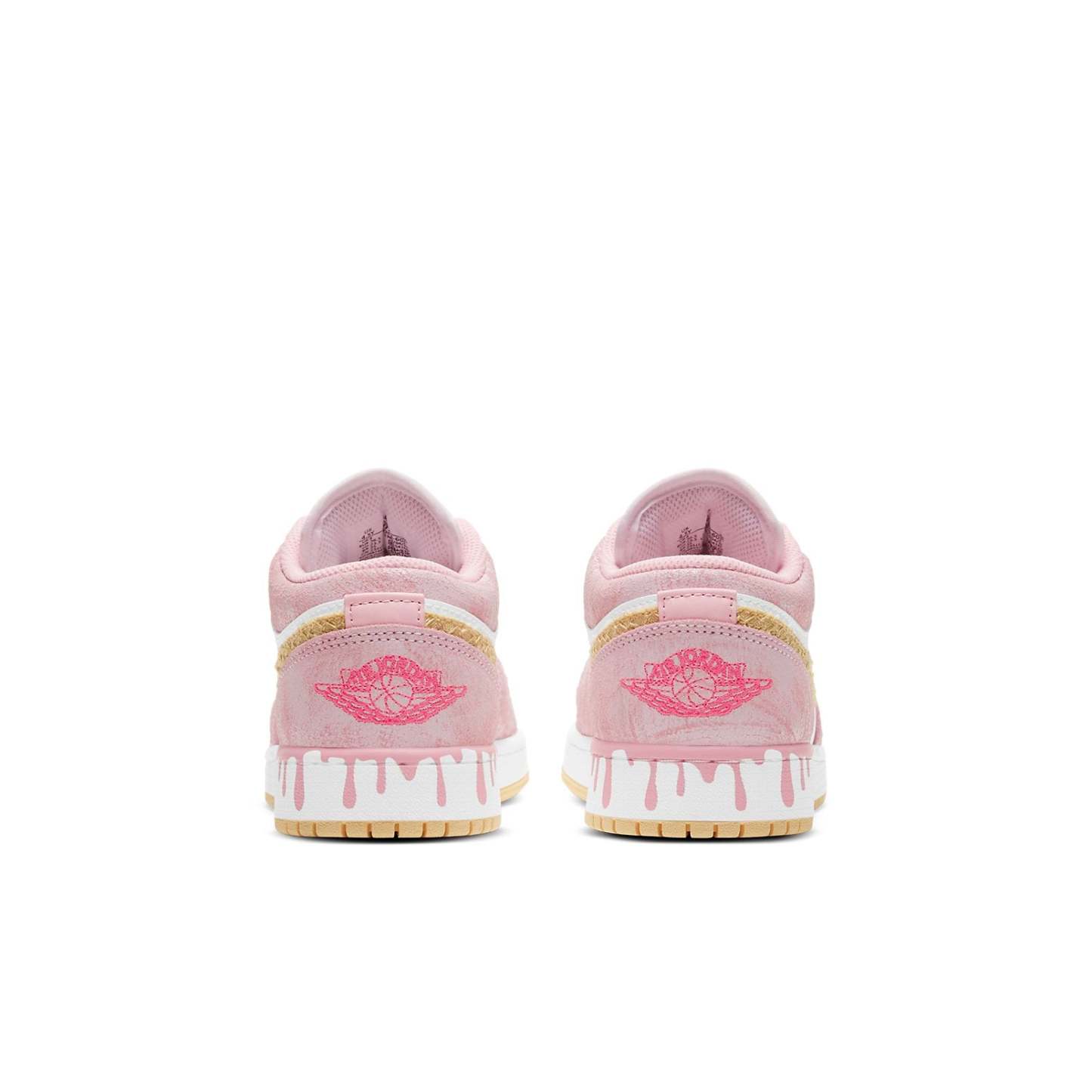 Underfoot, this Air Jordan 1 Low GS “Paint Drip” features a gold, rubber outsole that corresponds to the honeycomb-like, gold iconic Nike Swoosh on the medial and lateral sidewalls of this Air Jordan 1. Moreover, it highlights a pink, paint-drip effect that takes over the midsole at the back of this Jordan, also adding to the ice-cream feel this shoe inhabits. SKU: CW7104-601 Release Date: 2021 Color: Arctic Punch/Pale Vanilla/White