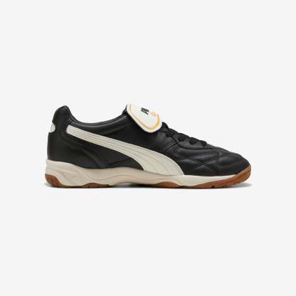 PUMA dives into its deep archives once again to reintroduce a true Futsal icon, the King Indoor. After making its first appearance in 1999, the PUMA King Indoor transcended the world of street cages and indoor courts with its premium leather upper, flat woven laces, cutout lace holder, and durable rubber sole, while the football-inspired deco stitching throughout the upper and fold-over tongue round off the classic design alongside gold foiled PUMA logos.