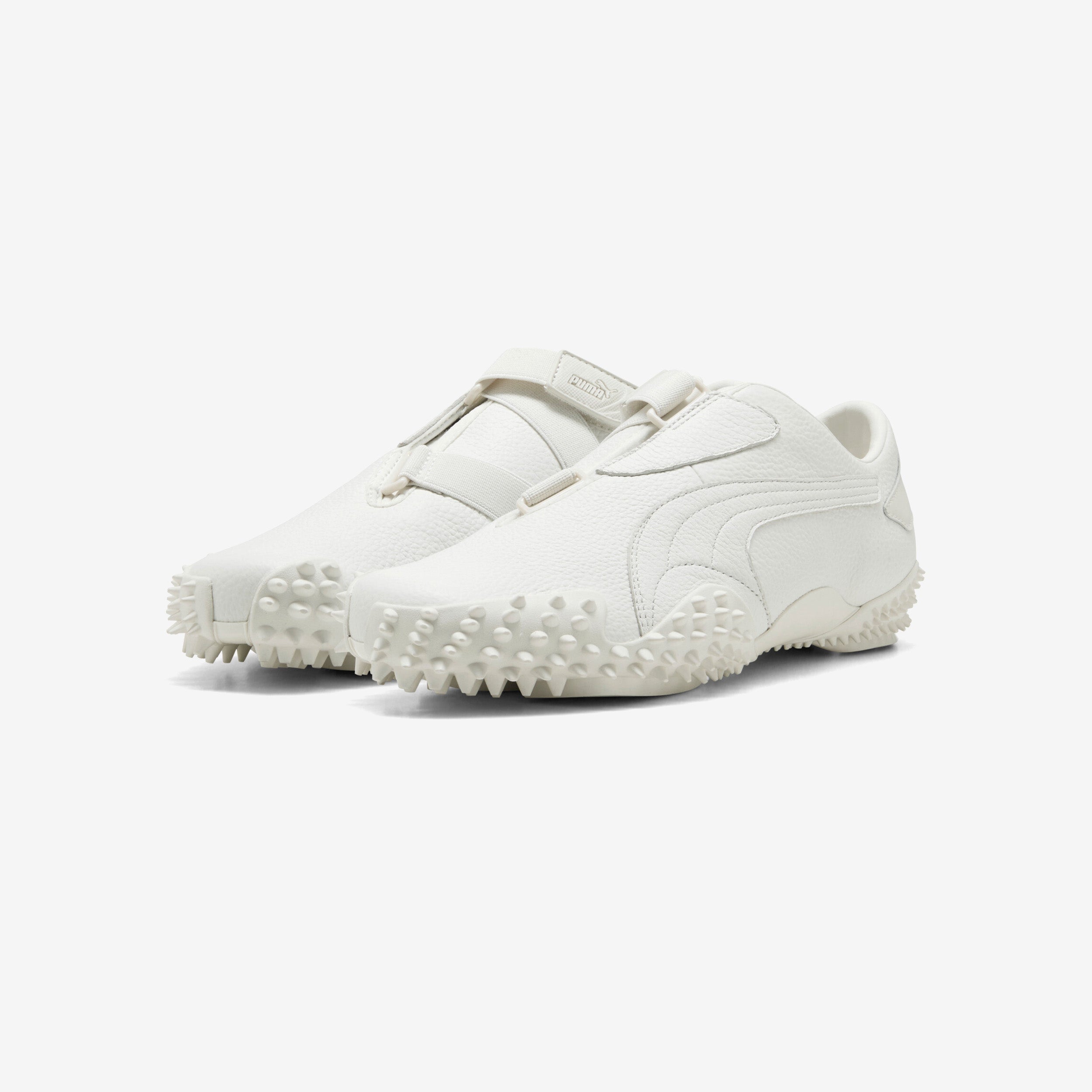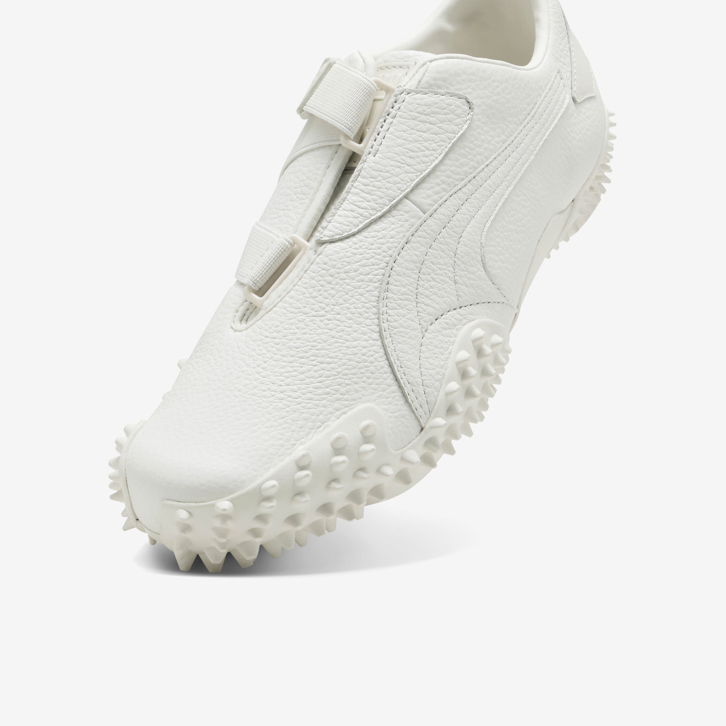 After making its long-awaited return in 2024, the PUMA Mostro continues to own the spotlight with this brand-new Leather iteration, merging its classic design with fresh fabrics and signature PUMA detailing. Taking its name from the Italian word for monster, the PUMA Mostro Leather draws inspiration from two diverse realms: the sleek sprinting spikes of the ‘60s and the surfing shoes of the ‘80s. This edition combines a crisp leather upper with an elasticated hook-and-loop closure, while the silhouette's distinct rubber outsole with spike design details wraps around the base.