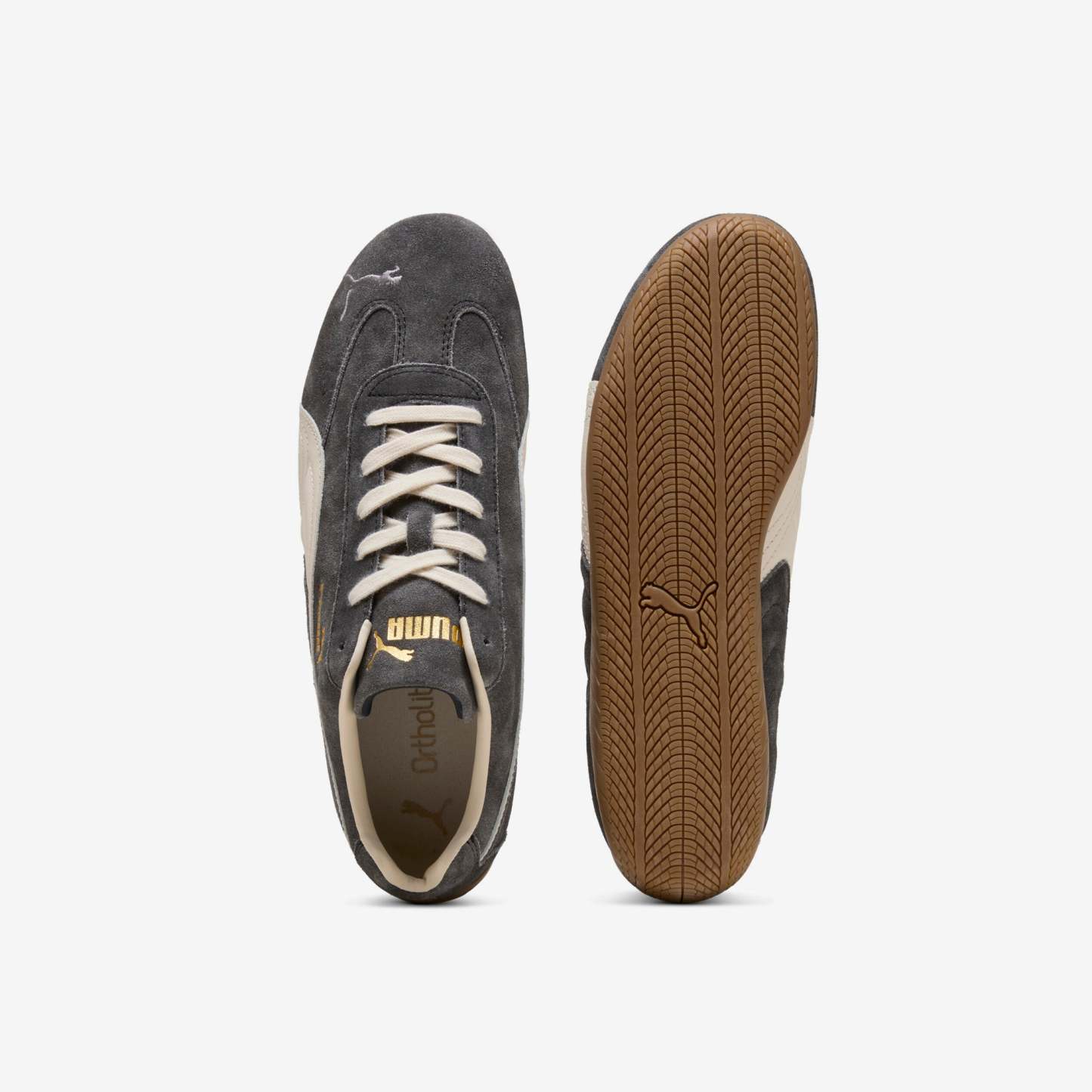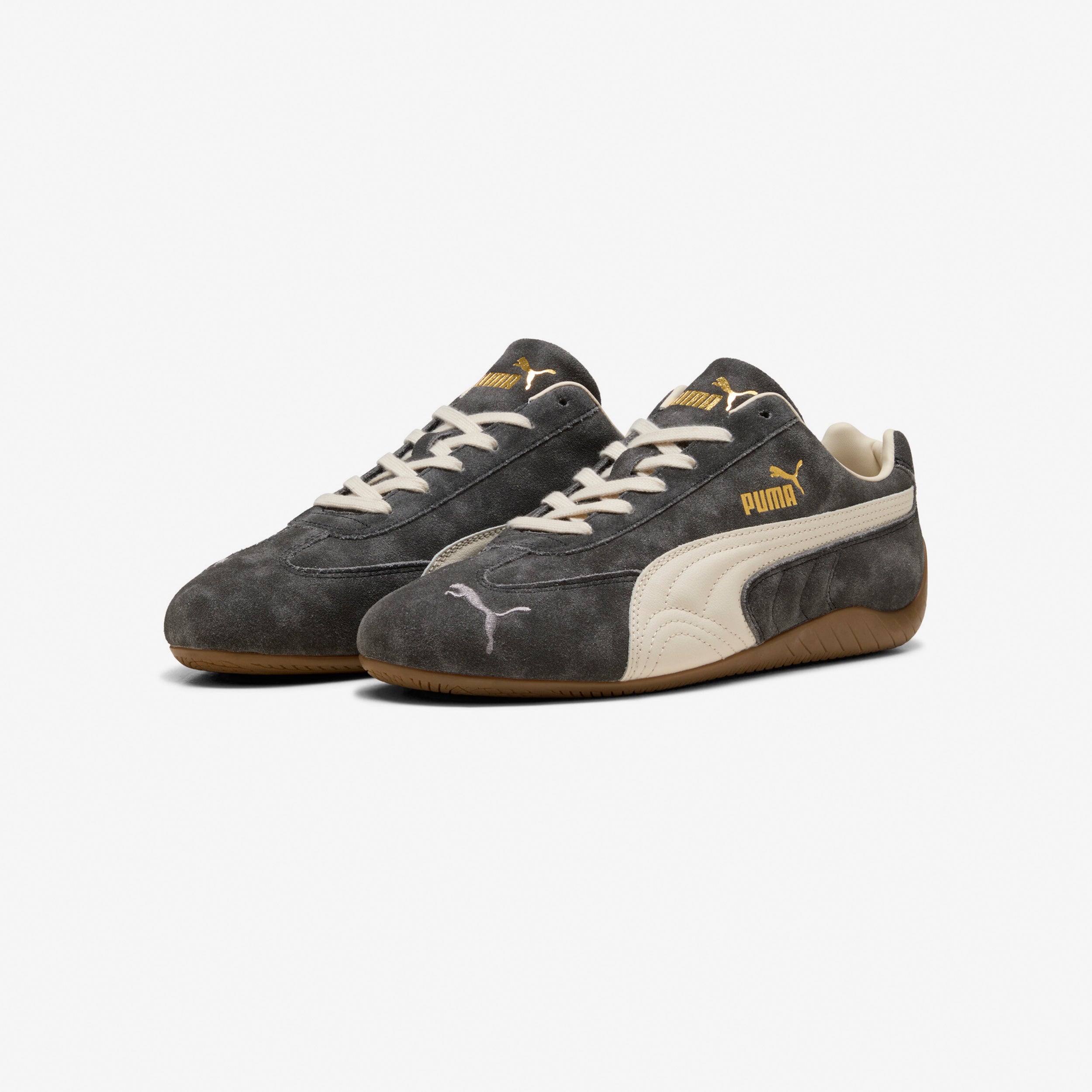 Born on the racetrack, the cutting-edge PUMA Speedcat continues to steal the show with this brand-new Faded iteration. With a classic race shoe-inspired shape, sleek lines that almost appear fast, and bold design, the PUMA Speedcat Faded captures the velocity of the racetrack through a two-tone suede upper, offering a sophisticated and stylish look for those who appreciate subtle elegance. A premium leather Formstrip, plush synthetic lining, and signature PUMA branding throughout round off the classic design.