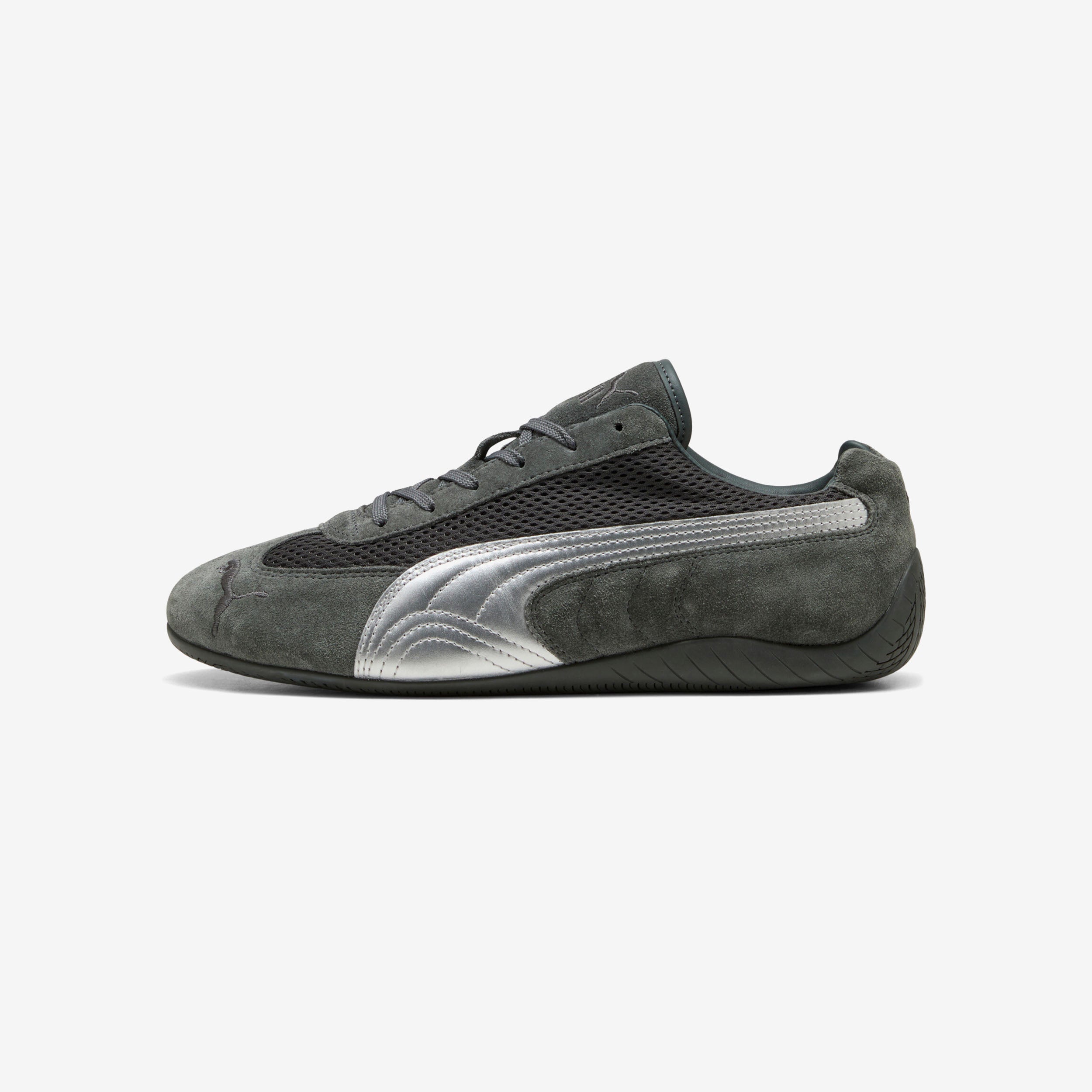 A PUMA icon inspired by the speed of the racetrack takes a premium turn with this brand-new iteration of the cutting-edge Speedcat. With a classic race shoe-inspired shape and sleek lines that look fast and bold, this premium edition of the PUMA Speedcat has a mesh upper and metallic leather PUMA Formstrip down the sides, complemented by signature PUMA branding on the toe, tongue, and heel.