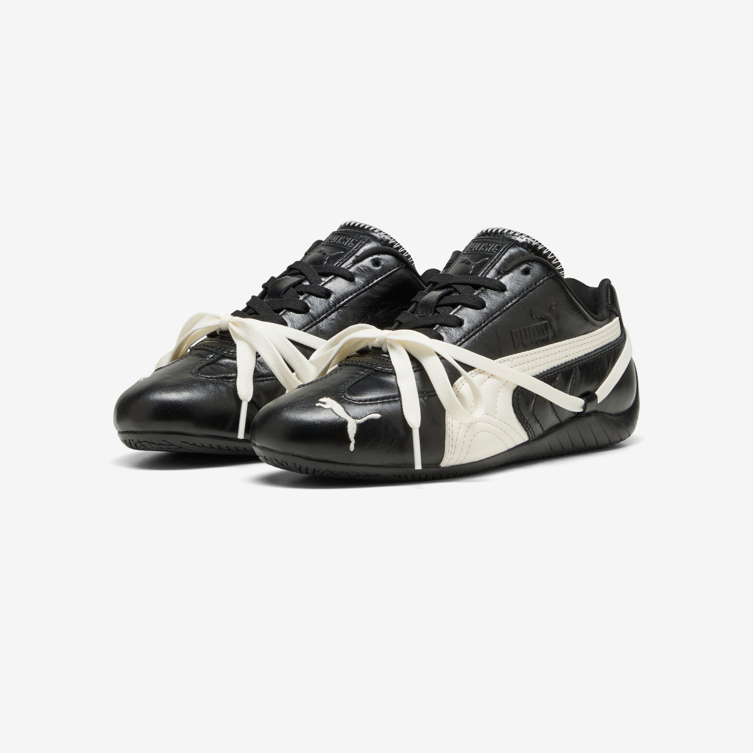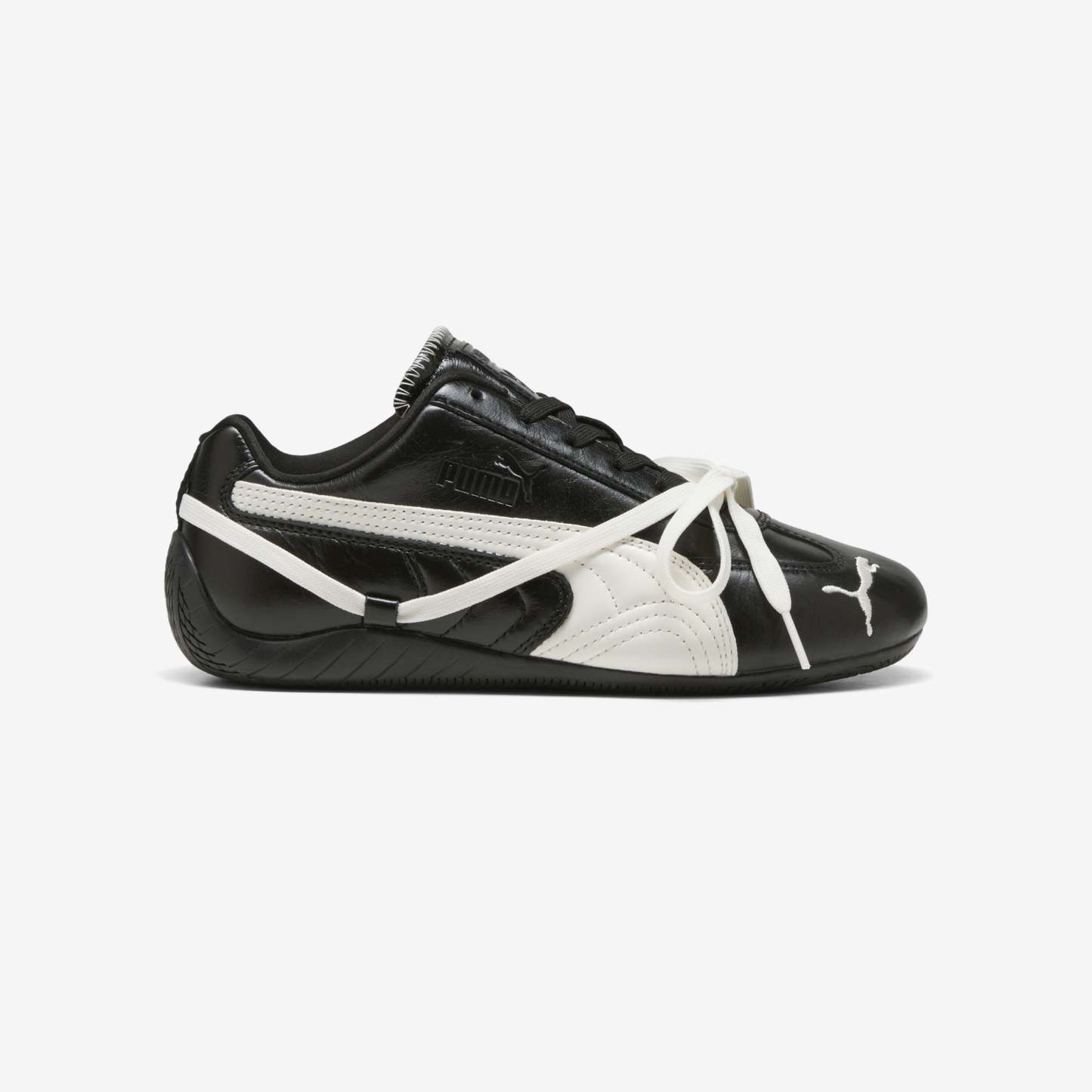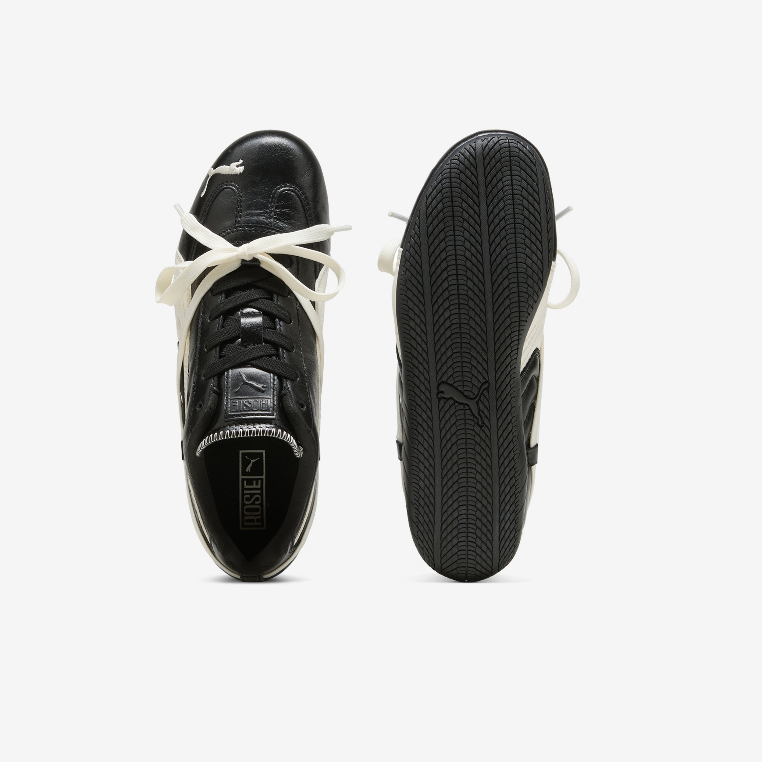 Designed to inspire everyone to peel back their layers, explore their style, and embrace their truest selves, PUMA comes together with Rosé to bloom the iconic PUMA Speedcat—reimagining the racing-inspired silhouette through Rosé-colored lenses. Blossoming with Rosé’s personal taste and aesthetics, this PUMA Speedcat PRM keeps the OG's design intact, pairing a leather and textile upper with lace ribbon loops above the midsole and an embroidered PUMA Cat logo near the toe. Finishing the design, a co-branded ROSIE logo hits the tongue and insole, paying homage to Rosé's nickname and the title of her debut album.