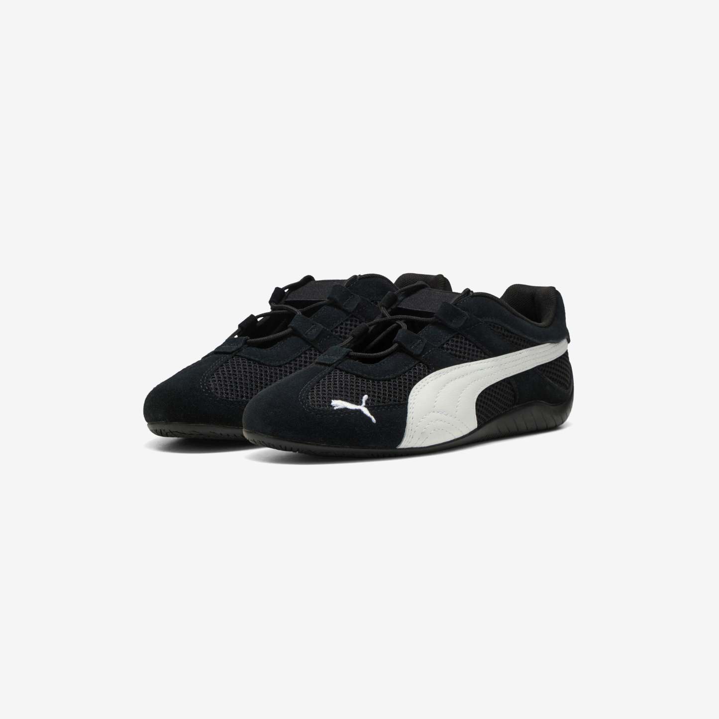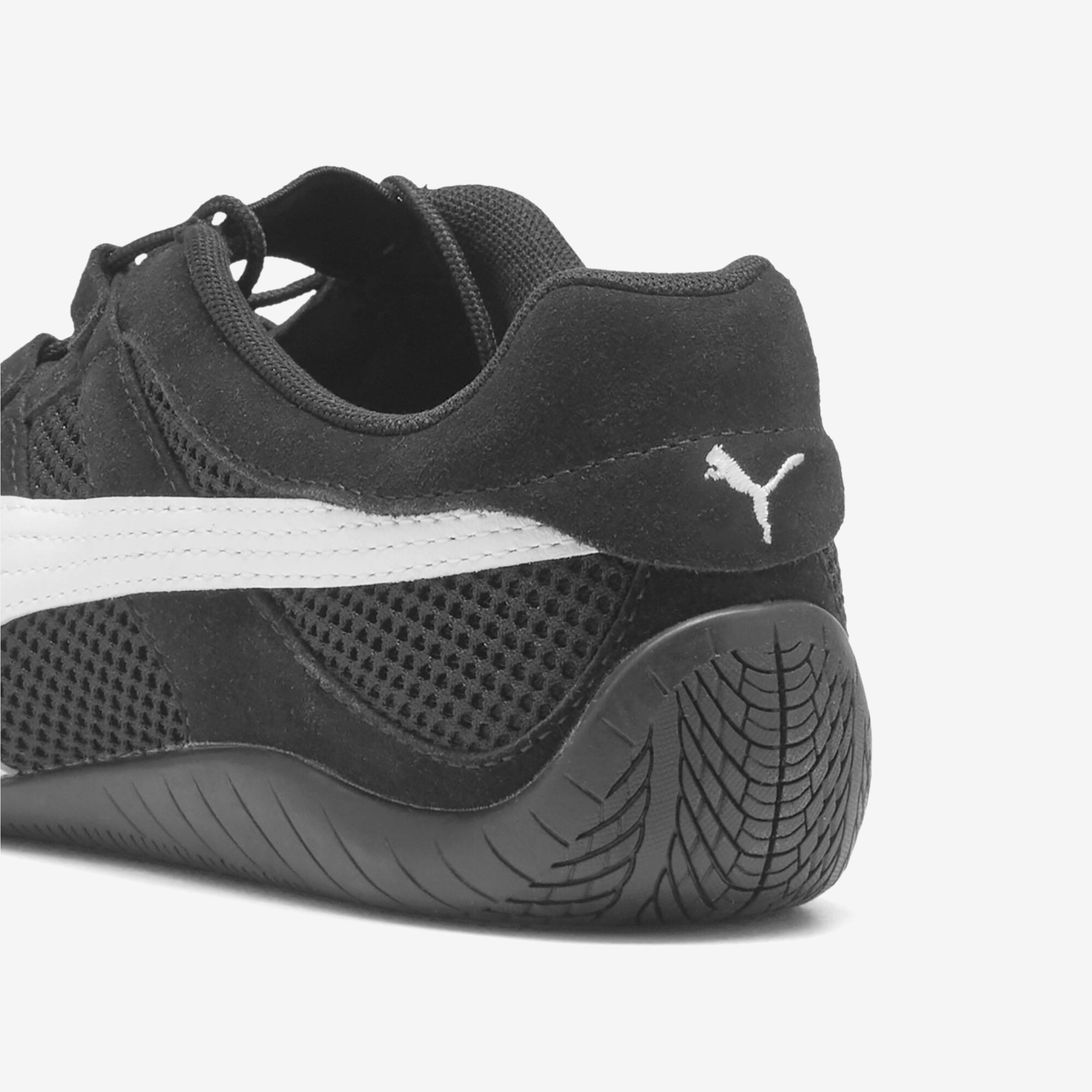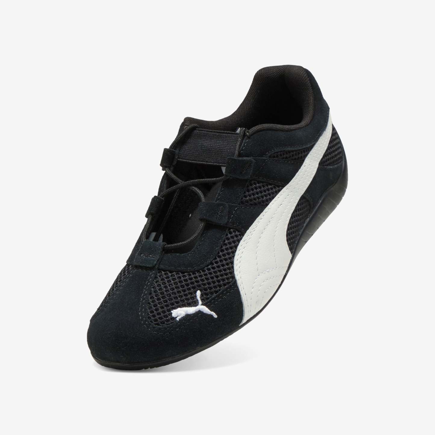 A true icon of racing culture, the brand-new PUMA Speedcat Go takes inspiration from its original look to merge its speed and precision-inspired aesthetic with a fresh, breathable design. Incorporating plush suede and mesh throughout the upper, this sleek, low-profile sneaker is detailed with a signature PUMA Formstrip on the sidewall, alongside embroidered PUMA Cat logos on the toe area and heel counter, atop a durable rubber sole, built to maintain top speed.