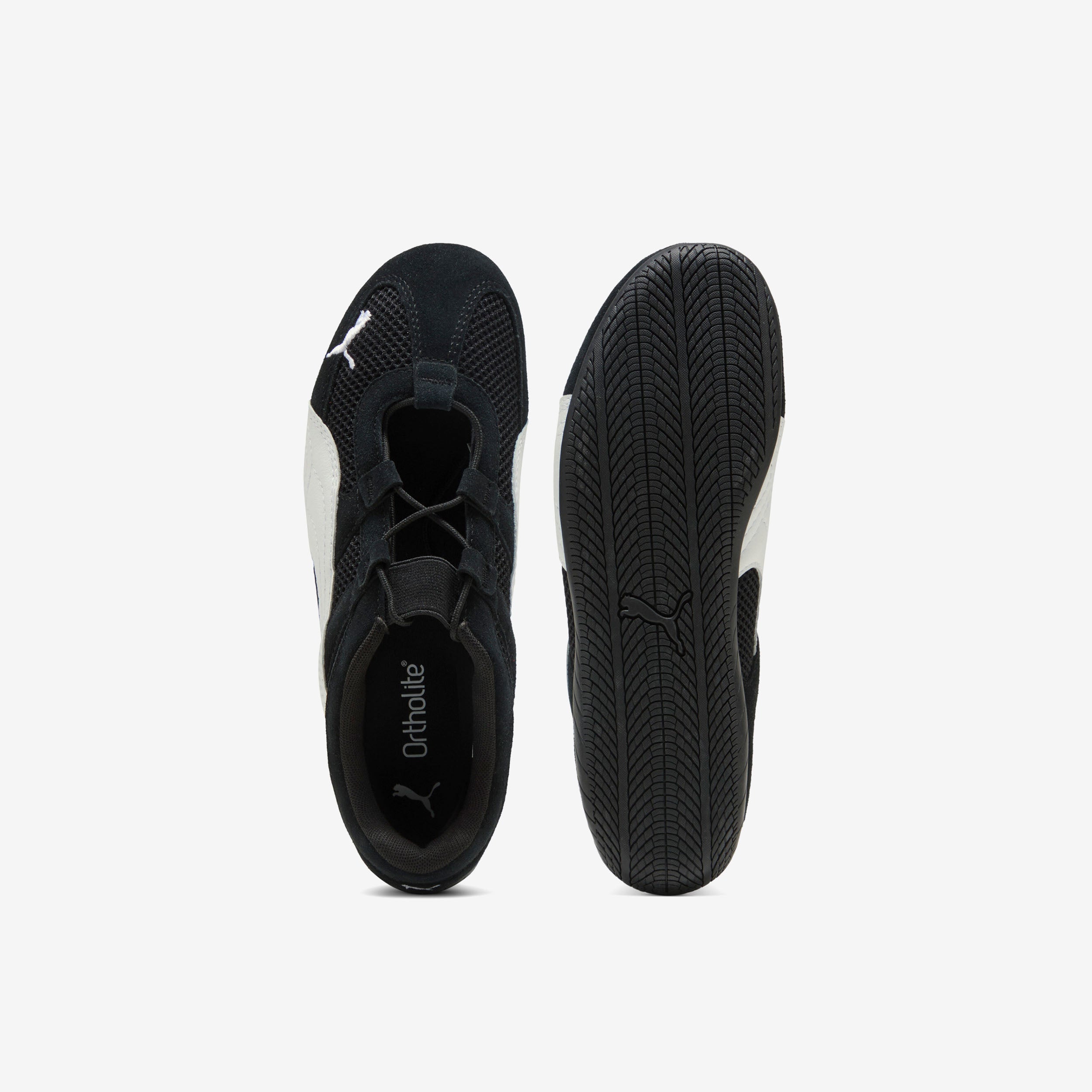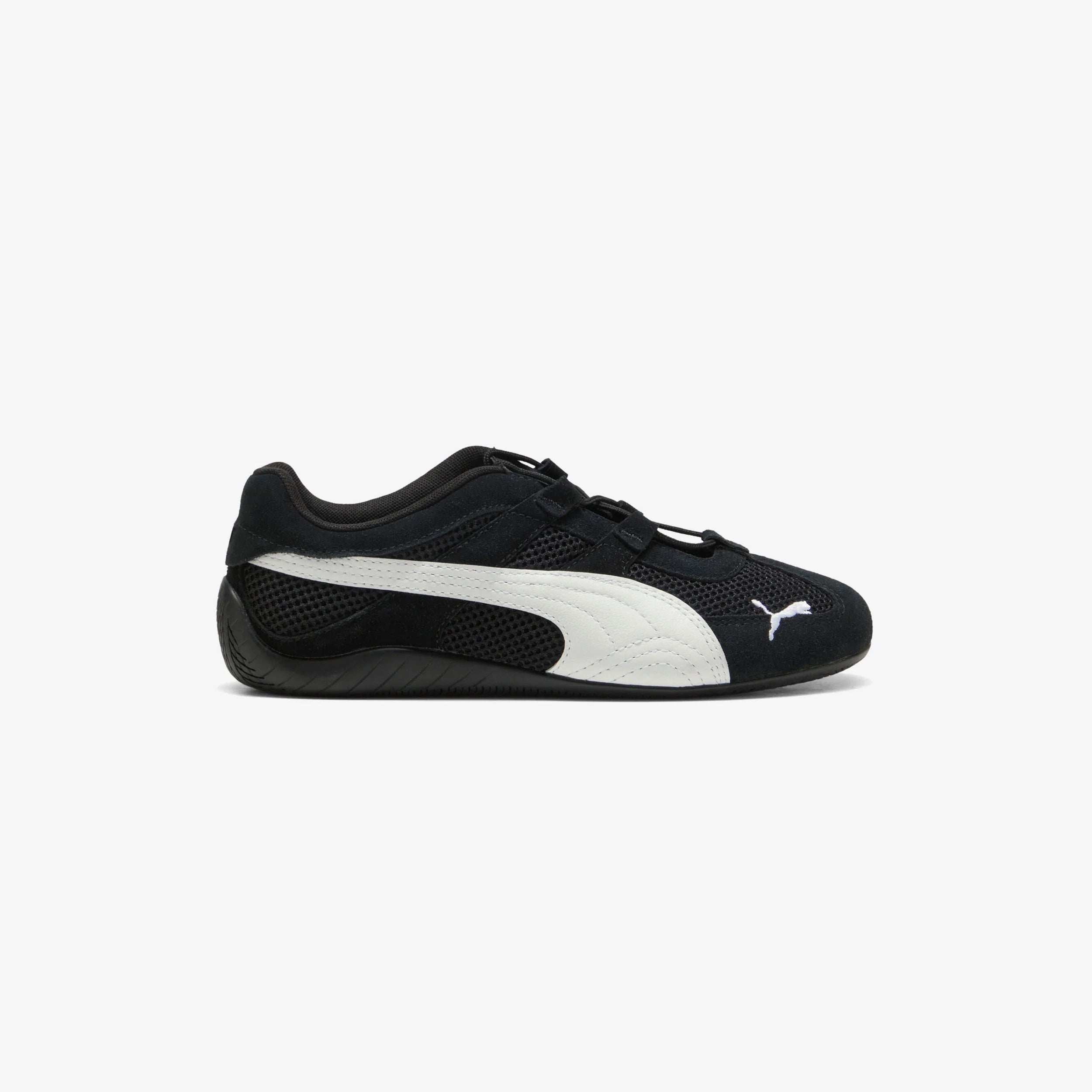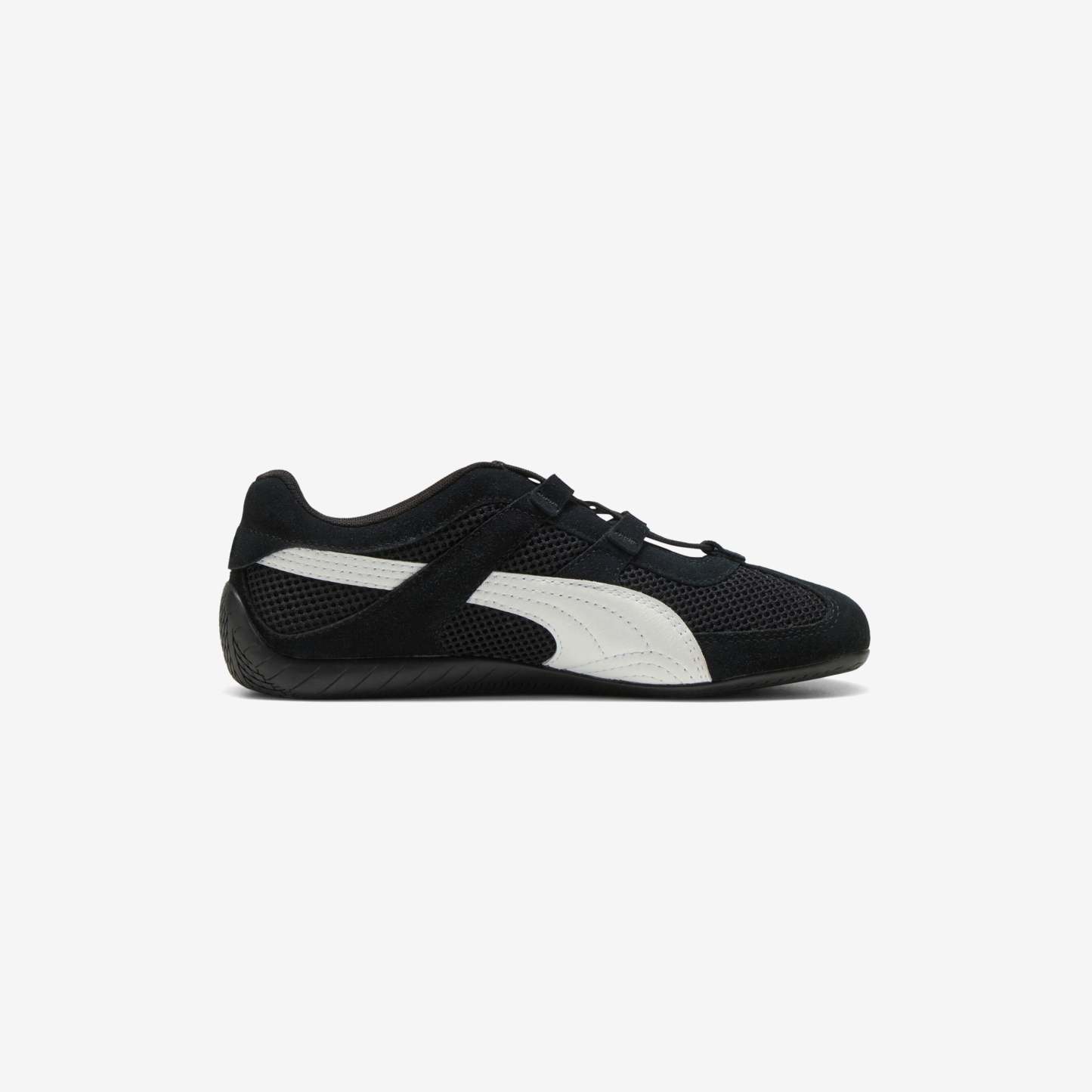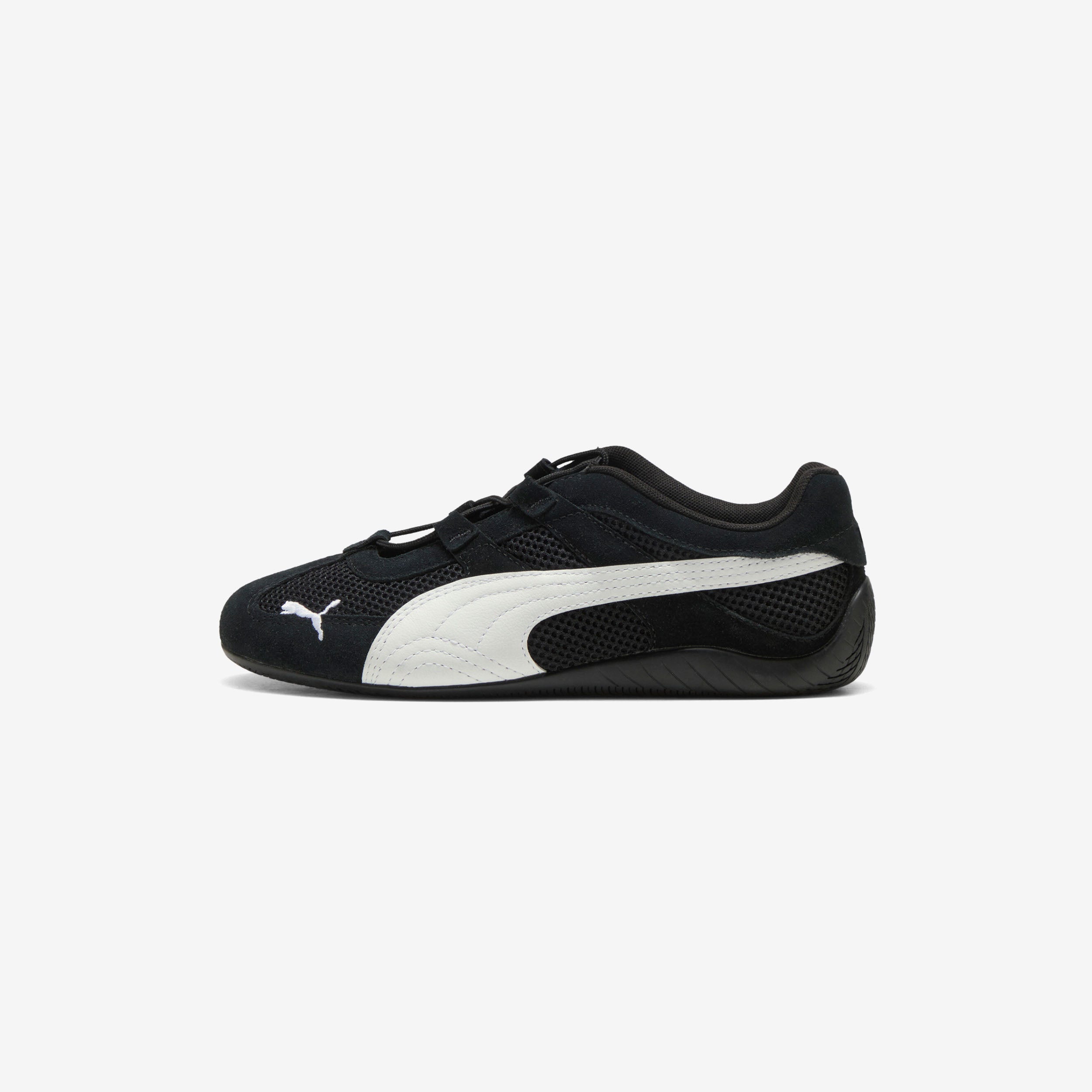 A true icon of racing culture, the brand-new PUMA Speedcat Go takes inspiration from its original look to merge its speed and precision-inspired aesthetic with a fresh, breathable design. Incorporating plush suede and mesh throughout the upper, this sleek, low-profile sneaker is detailed with a signature PUMA Formstrip on the sidewall, alongside embroidered PUMA Cat logos on the toe area and heel counter, atop a durable rubber sole, built to maintain top speed.